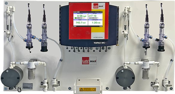 Überprüft Wasserparameter wie pH-Wert und Chlorgehalt: die Mess- und Regelwassertafel Easypro
