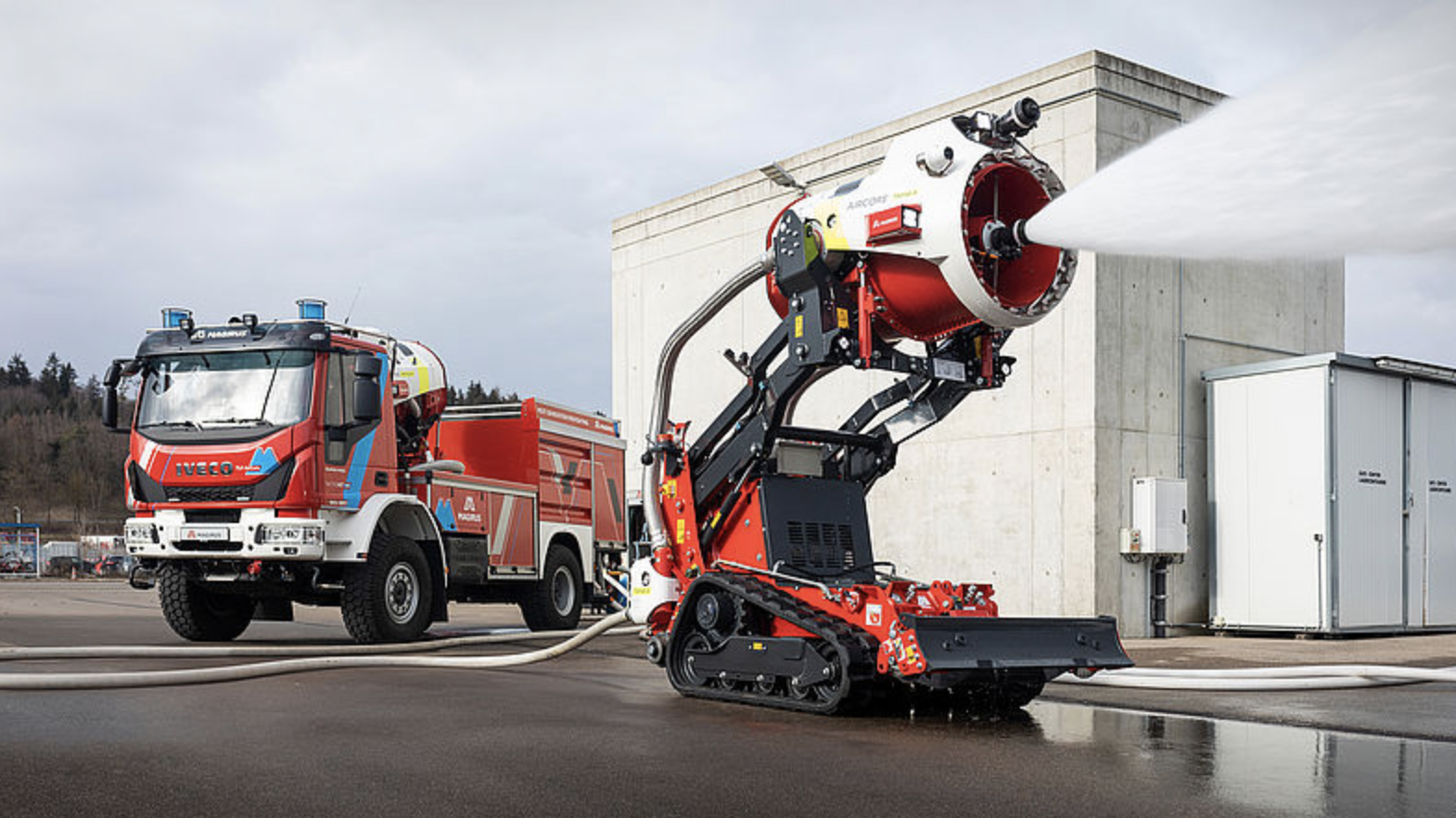 Technik, auf die sich Einsatzkräfte auch unter extremen Bedingungen jederzeit verlassen können – das ist der gemeinsame Anspruch von Magirus und EmiControls. Gerade bei Industrie- und Vegetationsbränden sowie bei Einsätzen in Tunneln ist eine wirkungsvolle Rauch- und Schadstoffniederschlagung ein entscheidender Faktor für die Sicherheit von Einsatzkräften und Betroffenen. Um diesen anspruchsvollen Einsatzanforderungen mit leistungsstarken und zuverlässigen Systemlösungen gerecht zu werden, arbeitet Magirus seit über einem Jahrzehnt erfolgreich mit der EmiControls GmbH aus Bozen (Italien) zusammen – einem führenden Hersteller von Wassernebelturbinen und modularen Robotik-Lösungen. Ein Highlight dieser langjährigen Partnerschaft ist der AirCore TAF: ein multifunktionaler Roboter auf Basis modernster Wassernebeltechnologie.